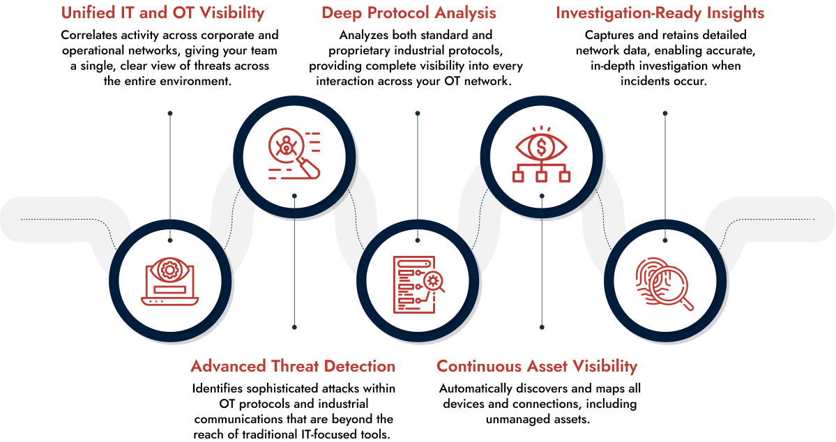 NetWitness OT solution powered by Deep Inspect is designed to provide complete visibility across both IT and OT environments. By unifying insights across your entire infrastructure, your team can detect threats earlier, reduce blind spots, and respond with confidence without disrupting critical operations.